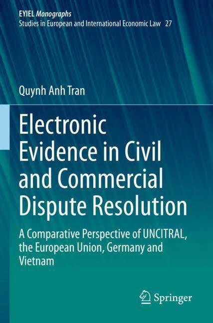 This book focuses on the current provisions of UNCITRAL, the European Union, Germany and Vietnam concerning electronic evidence in civil and commercial dispute resolution. It analyses the notion and the basic aspects of evidence and electronic evidence and explores the process of finding electronic evidence. Further, it discusses how the effectiveness of finding electronic evidence can be reconciled with a respect for fundamental rights, in particular with personal privacy and personal data protection. The book subsequently addresses the authentication and admissibility of electronic evidence; the evaluation of electronic evidence and the burden of proof; and the challenges of using electronic evidence in civil and commercial dispute resolution. Finally, it puts forward proposals for promoting the use of electronic evidence in these contexts.