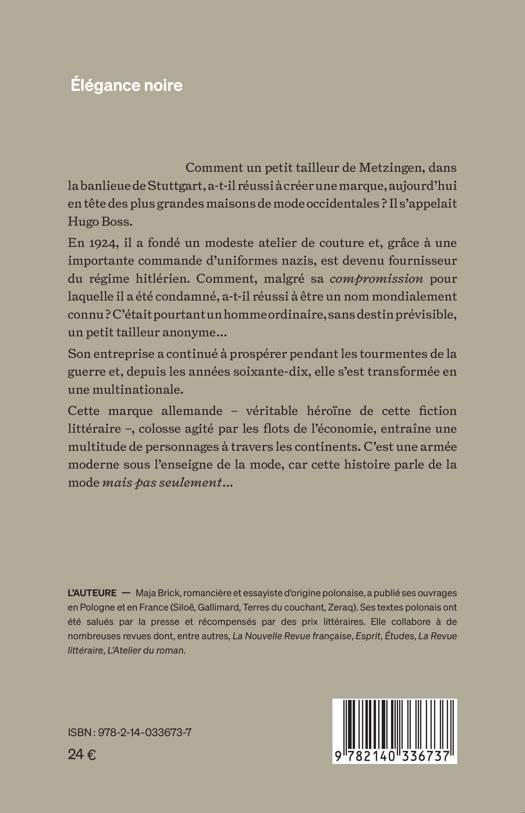 Comment un petit tailleur de Metzingen, dans la banlieue de Stuttgart, a-t-il réussi à créer une marque, aujourd'hui en tête des plus grandes maisons de mode occidentales ? Il s'appelait Hugo Boss. En 1924, il a fondé un modeste atelier de couture et, grâce à une importante commande d'uniformes nazis, est devenu fournisseur du régime hitlérien. Comment, malgré sa compromission pour laquelle il a été condamné, a-t-il réussi à être un nom mondialement connu ? C'était pourtant un homme ordinaire, sans destin prévisible, un petit tailleur anonyme... Son entreprise a continué à prospérer pendant les tourmentes de la guerre et, depuis les années soixante-dix, elle s'est transformée en une multinationale. Cette marque allemande - véritable héroïne de cette fiction littéraire -, colosse agité par les flots de l'économie, entraîne une multitude de personnages à travers les continents. C'est une armée moderne sous l'enseigne de la mode, car cette histoire parle de la mode mais pas seulement...