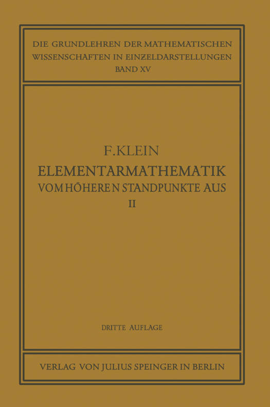 Elementarmathematik Vom Höheren Standpunkte Aus, II