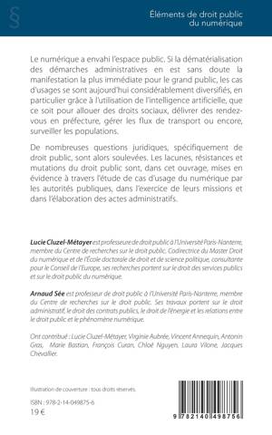 Le numérique a envahi l'espace public. Si la dématérialisation des démarches administratives en est sans doute la manifestation la plus immédiate pour le grand public, les cas d'usages se sont aujourd'hui considérablement diversifiés, en particulier grâce à l'utilisation de l'intelligence artificielle, que ce soit pour allouer des droits sociaux, délivrer des rendez-vous en préfecture, gérer les flux de transport ou encore, surveiller les populations. De nombreuses questions juridiques, spécifiquement de droit public, sont alors soulevées. Les lacunes, résistances et mutations du droit public sont, dans cet ouvrage, mises en évidence à travers l'étude de cas d'usage du numérique par les autorités publiques, dans l'exercice de leurs missions et dans l'élaboration des actes administratifs.