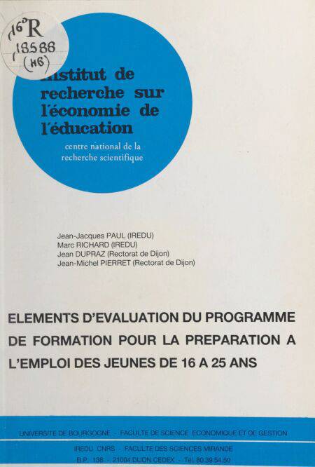 Eléments d'évaluation du programme de formation pour la préparation à l'emploi des jeunes de 16 à 25 ans E-BOOK
