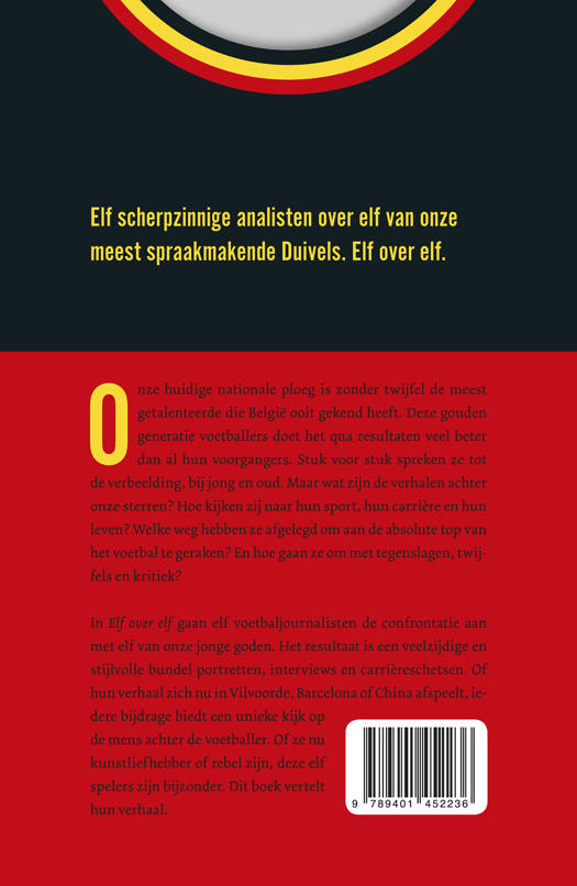 Onze huidige nationale ploeg is zonder twijfel de meest getalenteerde die België ooit gekend heeft. Deze gouden generatie voetballers doet het qua resultaten veel beter dan al hun voorgangers. Stuk voor stuk spreken ze tot de verbeelding, bij jong en oud. Maar wat zijn de verhalen achter onze sterren? Hoe kijken zij naar hun sport, hun carrière en hun leven? Welke weg hebben ze afgelegd om aan de absolute top van het voetbal te geraken? En hoe gaan ze om met tegenslagen, twijfels en kritiek? In Elf over elf gaan elf voetbaljournalisten de confrontatie aan met elf van onze jonge goden. Het resultaat is een veelzijdige en stijlvolle bundel portretten, interviews en carrièreschetsen. Of hun verhaal zich nu in Vilvoorde, Barcelona of China afspeelt, iedere bijdrage biedt een unieke kijk op de mens achter de voetballer. Of ze nu kunstliefhebber of rebel zijn, deze elf spelers zijn bijzonder. Dit boek vertelt hun verhaal.