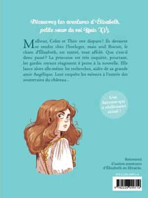 Malheur, Colin et Théo ont disparu ! Ils devaient se rendre chez l'horloger, mais seul Biscuit, le chien d'Élisabeth, est rentré, tout affolé. Que s'est-il donc passé ? La princesse est très inquiète, pourtant, les gardes royaux réagissent à peine à la nouvelle. Elle lance alors elle-même les recherches, aidée de sa grande amie Angélique. Leur enquête les mènera à l'entrée des souterrains du château...