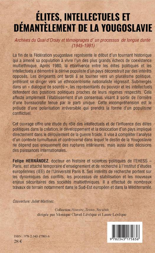 L'éclatement tragique de la Yougoslavie est une des pièces maîtresses de l'instauration du nouvel ordre mondial après 1989 et le début d'un tournant historique qui a amené sa population à vivre l'un des plus grands échecs de coexistence multiethnique. Tardant à se tourner vers un pluralisme politique, les dirigeants et les intellectuels ont préféré se diriger vers un ethnocentrisme nationaliste régressif. Cet ouvrage offre une étude du rôle des intellectuels et de l'influence des élites politiques dans la création, le développement et la dislocation d'un pays impliqué directement dans le déroulement de la guerre froide.