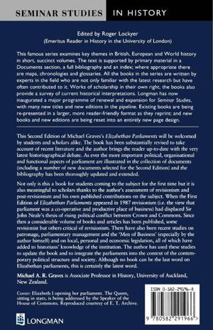 Michael Graves provides a clear summary of conflicting interpretations of Elizabethan parliaments and presents a new perspective, striking a balance between business and politics.