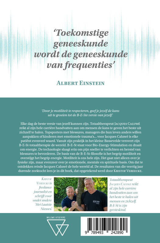 Elke dag de beste versie van jezelf kunnen zijn. Totaaltherapeut Jacques Caluwé reikt al zijn hele carrière handvatten aan om mensen de kans te geven het beste uit zichzelf te halen. Topsporters met blessures, managers die hun leven anders willen aanpakken of kinderen met emotionele trauma’s... voor Jacques Caluwé is elke patiënt evenveel waard. Vanuit zijn praktijk in het kleine Bassevelde verovert zijn B-E-St-totaaltherapie de wereld. B-E-St staat voor Bio-Energy-Stimulation en draait om energie. De technologie slaagt erin om pijn sneller te verlichten en herstel van blessures te bevorderen. De basis van de B-E-St-filosofie is het begrip motiliteit en overstijgt het begrip energie. Motiliteit is ons hele zijn. Het gaat niet alleen over je fysieke zijn, maar evenzeer over je emotionele, mentale en spirituele basis. Om dat te ontdekken reisde Jacques Caluwé de hele wereld af. De resultaten van die veertig jaar durende zoektocht lees je in dit boek, dat opgetekend werd door Kristof Vereecke.