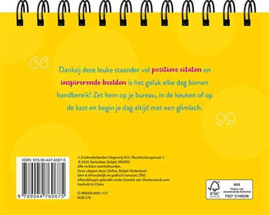 Dankzij deze leuke staander vol positieve citaten en inspirerende beelden is het geluk elke dag binnen handbereik! Zet hem op je bureau, in de keuken of op de kast en begin je dag altijd met een glimlach.