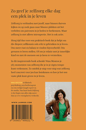In dit inspirerende boek schenkt Nina Mouton je 365 momenten van zelfzorg die je in je eigen tempo kunt verkennen. Zo ontdek je stap voor stap wat zelfzorg heel concreet voor jou kan betekenen en hoe je het een vaste plek kunt geven in je leven.