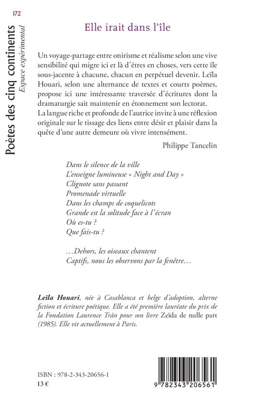 "Un voyage-partage entre onirisme et réalisme selon une vive sensibilité qui migre ici et là d'êtres en choses, vers cette île sous-jacente à chacune, chacun en perpétuel devenir. Leïla Houari, selon une alternance de textes et courts poèmes, propose ici une intéressante traversée d'écritures dont la dramaturgie sait maintenir en étonnement son lectorat. La langue riche et profonde de l'autrice invite à une réflexion originale sur le tissage des liens entre désir et plaisir dans la quête d'une autre demeure où vivre intensément." Philippe Tancelin