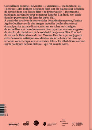 Exposition Rencontres d'Arles 2025 Donnant vie à des récits invisibilisés, Agnès Geoffray incarne dans ses images la révolte universelle des femmes créant ainsi le vocabulaire photographique de la rébellion des « mauvaises filles ». Inspirée par le travail de l'historienne Véronique Blanchard (Mauvaises filles, Textuel, 2016), l'artiste met en scène des jeunes femmes seules ou en groupe, objet de stratégies de surveillance et de redressement des corps. Mais aussi des jeunes filles dont les visages et postures incarnent des gestes d'opposition, de révolte, de dissidence et de solidarité.