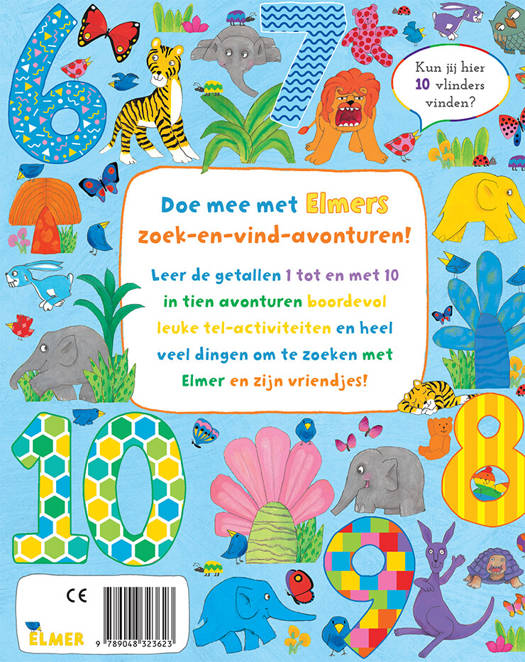 Leer de getallen 1 tot en met 10 in tien avonturen boordevol leuke tel-activiteiten en heel veel dingen om te zoeken met Elmer en zijn vriendjes!