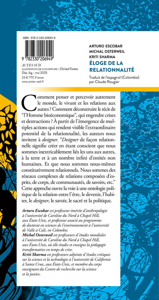 Comment penser et percevoir autrement le monde, le vivant et nos relations ? Comment déconstruire le récit de "l'homme bioéconomique" qui engendre crises et destructions ? À travers l'émergence de multiples actions qui rendent visible l'extraordinaire potentiel de la relationnalité, les auteurs nous inviter à designer. "Designer de façon relationnelle veut dire créer en étant conscient de ce que nous sommes inextricablement liés les uns aux autres, à la terre et à un nombre infini d'entités non humaines. Et de ce que nous-mêmes sommes constitutivement relationnels. Nous sommes des réseaux complexes de relations composées d'esprits, de corps, de communautés, de savoirs, etc." Cette approche ouvre ainsi la voie d'une ontologie politique de la relation entre l'être, le devenir, l'habiter.
