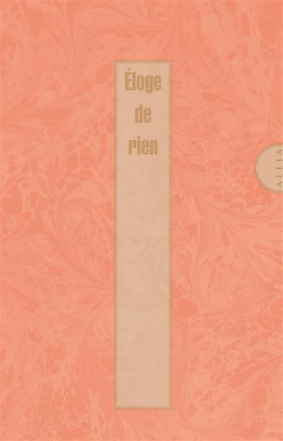 Cet éloge parodique paru anonymement en 1730 se construit autour du mot rien. Il tente d'élever la dérision au rang de principe à travers un panégyrique rabelaisien glorifiant le néant. Il a été établi que l'auteur en serait un certain Louis Coquelet, né à Péronne en 1676 et mort à Paris en 1754.