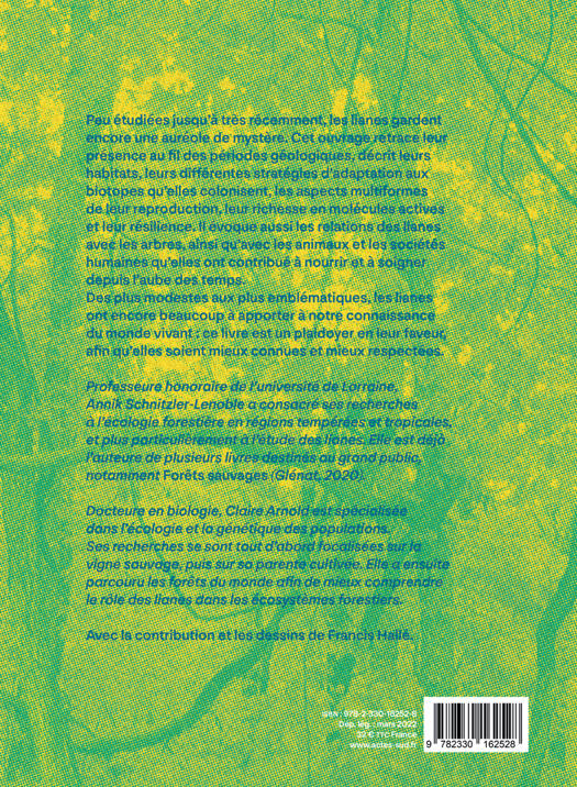Professeure honoraire de l'université de Lorraine, Annik Schnitzler a consacré ses recherches à l'écologie forestière en régions tempérées et tropicales, et plus particulièrement à l'étude des lianes. Elle est déjà l'auteure de plusieurs livres destinés au grand public, notamment Forêts sauvages (Glénat, 2020). Docteure en biologie, Claire Arnold est spécialisée dans l'écologie et la génétique des populations. Ses recherches se sont tout d'abord focalisées sur la vigne sauvage, puis sur sa parente cultivée. Elle a ensuite parcouru les forêts du monde afin de mieux comprendre le rôle des lianes dans les écosystèmes forestiers.