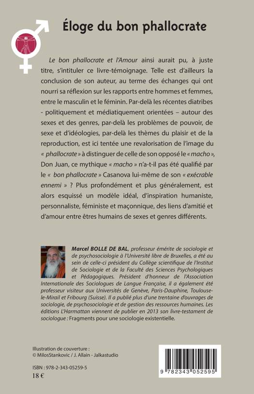 Par-delà les récentes diatribes - politiquement et médiatiquement orientées - autour des sexes et des genres, par-delà les problèmes de pouvoir, de sexe et d'idéologies, par-delà les thèmes du plaisir et de la reproduction, est ici tentée une revalorisation de l'image du "phallocrate" à distinguer de celle de son opposé le "macho". Plus généralement est alors esquissé un modèle idéal, d'inspiration humaniste, personnaliste, féministe et maçonnique, des liens d'amitié et d'amour entre êtres humains de sexe et genres différents.