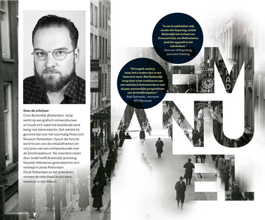 De Rotterdamse auteur Chris Buitendijk kreeg enkele jaren geleden een oude Thora in handen en ging op zoek naar de geschiedenis achter de naam die in de oude, Joodse Bijbel stond. Van wie is het boek geweest en hoe zag zijn leven eruit? Het resultaat is emanuel geworden - een half-fictionele roman over een man in het Rotterdam van vóór en tijdens de Tweede Wereldoorlog. Tegelijkertijd wordt hier een verhaal van alle tijden verteld, een verhaal over het opgroeien van een jongen, over liefde en het kwijtraken van de liefde, over schuld en vergeving. Hoe blijf je staande als je wereld wankelt?
