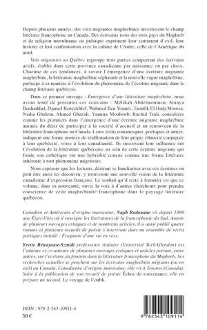 Depuis plusieurs années, des voix migrantes maghrébines investissent le champ littéraire francophone au Canada. Des écrivains issus du Maghreb expriment leur sentiment d'exil, leur histoire et leur confrontation avec la culture de l'autre, celle de l'Amérique du nord. Cet ouvrage regroupe trois tendances : l'émergence d'une écriture migrante maghrébine, la littérature maghrébine sépharade et la nouvelle vague maghrébine. Chacune participe à sa manière à l'évolution du phénomène de l'écriture migrante dans le champ littéraire québécois.