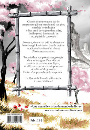 Résumé : Chassée de son royaume par les usurpateurs qui ont empoisonné son père, entraînée pour devenir le bras armé et vengeur de sa mère, Emiko prend la route afin de reconquérir la couronne. Pourtant, durant son exil, les choses ont bien changé. La situation dans la capitale nordique d’Ashikawa lui réserve d’étonnantes surprises. Traquée dans son propre pays, plongée dans les intrigues d’une ville où espions et assassins sont légion, tiraillée entre ses devoirs de princesse et sa liberté de guerrière, Emiko n’est pas au bout de ses peines... La Voie de la Tornade suffira-t-elle à la tirer d’affaire ?