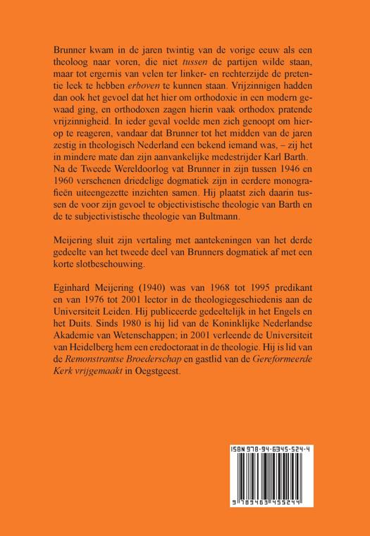 Brunner kwam in de jaren twintig van de vorige eeuw als een theoloog naar voren, die niet tussen de partijen wilde staan, maar tot ergernis van velen ter linker- en rechterzijde de pretentie leek te hebben erboven te kunnen staan. Vrijzinnigen hadden dan ook het gevoel dat het hier om orthodoxie in een modern gewaad ging, en orthodoxen zagen hierin vaak orthodox pratende vrijzinnigheid. In ieder geval voelde men zich genoopt om hier-op te reageren, vandaar dat Brunner tot het midden van de jaren zestig in theologisch Nederland een bekend iemand was, – zij het in mindere mate dan zijn aanvankelijke medestrijder Karl Barth. Na de Tweede Wereldoorlog vat Brunner in zijn tussen 1946 en 1960 verschenen driedelige dogmatiek zijn in eerdere monografieën uiteengezette inzichten samen. Hij plaatst zich daarin tus-sen de voor zijn gevoel te objectivistische theologie van Barth en de te subjectivistische theologie van Bultmann.