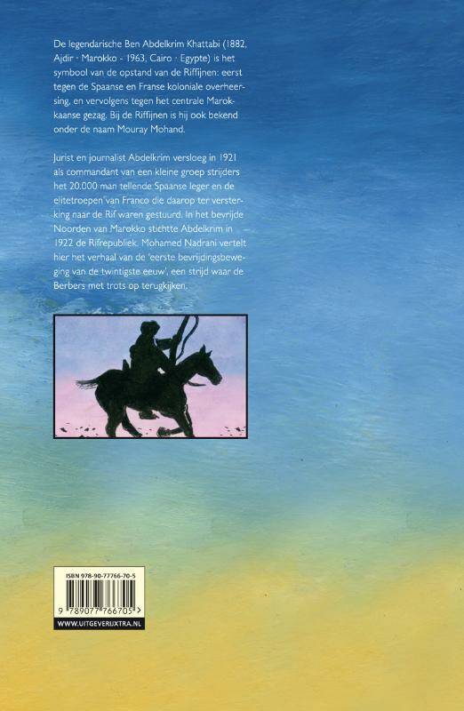 Strip (hardcover, kleur) • De legendarische Ben Abdelkrim Khattabi, alias Mouray Mohand, is het symbool van de opstand van de Riffijnen in Marokko: eerst tegen de Spaanse en Franse koloniale overheersing, en vervolgens tegen het centrale gezag. Jurist en journalist Abdelkrim versloeg in 1921 als commandant van een kleine groep Riffinse strijders het 20.000 man tellende Spaanse leger en de elitetroepen van Franco die daarop ter versterking naar de Rif waren gestuurd. In het bevrijde Noorden van Marokko stichtte hij in 1922 de Rif-republiek. Mohamed Nadrani vertelt het verhaal van de ‘eerste bevrijdingsbeweging van de twintigste eeuw’, een strijd waar de Berbers met trots op terugkijken.