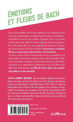 Ce livre vous invite à comprendre leurs propriétés et à apprendre comment les intégrer dans votre quotidien. Que vous cherchiez à apaiser une émotion forte, à surmonter une peur ou à reprendre confiance en vous, les fleurs de Bach peuvent devenir un allié de choix dans votre quête d’équilibre et de sérénité.