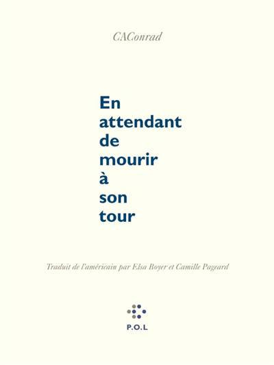 "Oui, la poésie est une solution. C'est le troisième rituel que j'ai réalisé pour sortir de la dépression après le meurtre de mon petit ami Earth. Les rituels pour créer des poèmes provoquent en nous des changements dont nous ne connaissons pas encore l'étendue, et j'avais décidé de trouver les bons ingrédients pour le rituel, et je l'ai fait. Ça a marché."CAConrad travaille avec d'anciennes techniques poétiques et rituelles depuis 1975. Jeune poète, CAConrad a vécu à Philadelphie (USA), où nombre de ses proches ont disparu au début de la crise du sida. Dans En attendant de mourir à son tour (2017), il cherche à surmonter le meurtre de son compagnon Earth à travers 18 rituels de poésie (soma)tiques qui activent l'écriture par le corps tout en renouvelant les rapports entre poésie visuelle, prose, narration, activisme et humour.