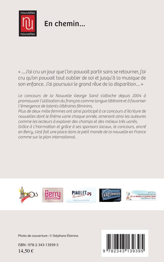En chemin… réunit les 8 nouvelles lauréates du concours de la nouvelle George Sand. Cette année, les participantes se sont mises « en chemin… », proposant des interprétations différentes et très personnelles. Souvenir, passé, destin, espoir ou même danger sont autant de thèmes que les lauréates présentent aux lecteurs, dans un recueil émouvant.