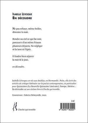C’est de la nuit, comme du blanc de la neige, que viennent les poèmes d’« En découdre ». Ils chantent l’amour, un don de la vie qu’il faut sans cesse raviver, enflammer, pour que la nuit et le froid, comme la nature au printemps, « empoign(ent) ce qui serait lumière » et en perpétuent l’écho dans les corps amoureux le temps d’une vie.