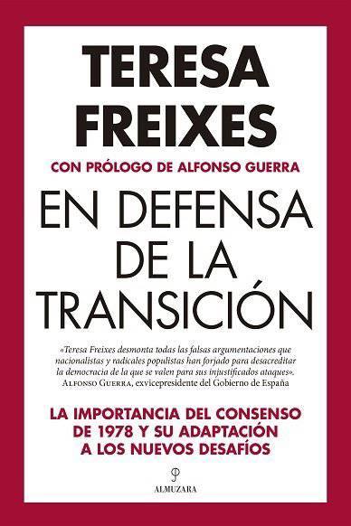 En un momento crucial de la historia de España, Teresa Freixes nos ofrece una perspectiva esclarecedora sobre el proceso que llevó a la consolidación de la democracia en España, al tiempo que nos hace reflexionar sobre la vigencia del «consenso del 78». Desde los desafíos enfrentados durante la Transición hasta las amenazas actuales contra el Estado de derecho, la catedrática en Derecho Constitucional y jurado de los Premios Princesa de Asturias nos invita a reflexionar sobre los principios democráticos y el imperativo de defenderlos frente a las adversidades. Con una mirada crítica pero esperanzadora, desmonta los mitos y falsas narrativas que buscan socavar la legitimidad de la democracia española. Su compromiso con la verdad y la justicia resuena a lo largo de estas páginas, recordándonos la importancia de mantenernos vigilantes ante cualquier amenaza contra nuestras libertades y derechos. Estas páginas no solo son un testimonio histórico imprescindible, sino también un llamado a la acción para preservar y fortalecer los cimientos de nuestra democracia, que nos instan a asumir la responsabilidad de proteger el legado de la Transición y defender los principios democráticos que tanto costó alcanzar. Una obra indispensable para comprender nuestro pasado, reflexionar sobre nuestro presente y forjar un futuro más justo y democrático para todos.«No se puede elegir el tiempo en que vivimos, pero sí se puede elegir la respuesta que damos a ese tiempo que nos ha tocado vivir. En los años setenta del siglo pasado una generación optó por dar una respuesta inédita en nuestra historia: frente a la confrontación, el pacto. Una generación que se sabía destinada a cerrar un capítulo ominoso de la historia de España y que no pensaba en la revancha, sino en una España cívica, humana. Y si para ello había que empujar hacia la convivencia y la tolerancia, hagámoslo; esa fue la divisa del momento y del lugar». Alfonso Guerra, exvicepresidente de Gobierno de España.