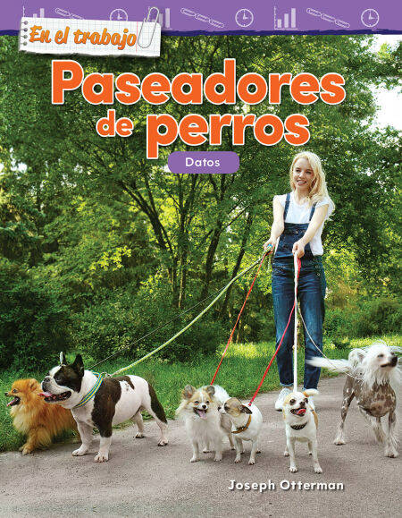 There are one, two, three, four, five dogs to walk. But there is only one dog walker. Collect data on dogs, their leashes, and their names! This Spanish math book combines math and reading skills and uses real-life examples of problem solving to teach subject-area content. The dynamic images, detailed sidebars, practice problems, and math diagrams make learning how to collect data easy and fun. Text features include a table of contents, a glossary, an index, and captions to build vocabulary and increase understanding of math and reading concepts. An in-depth problem-solving section provides additional learning and practice opportunities. Engage students with this high-interest nonfiction book!