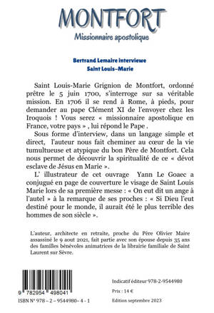 Sous forme d'interview, dans un langage simple et direct, l'auteur nous fait cheminer au cœur de la vie tumultueuse et atypique du bon Père de Montfort. Cela nous permet de découvrir la spiritualité de ce « dévot esclave de Jésus en Marie ».