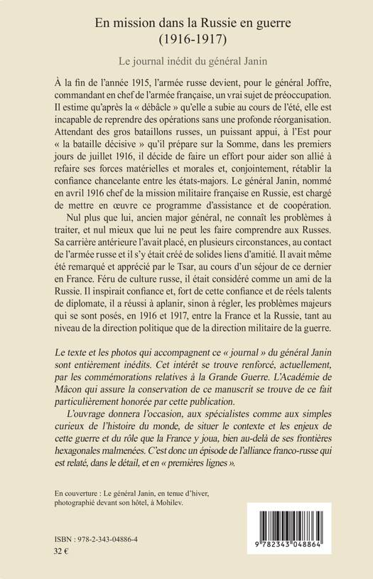 Après sa « débâcle » au cours de l'été, l'armée russe devient fin 1915 un sujet de préoccupation pour le général Joffre, qui attend d'elle un puissant appui à l'Est. Le général Janin, nommé en avril 1916, chef de la mission militaire française en Russie, est chargé de mettre en uvre ce programme d'assistance et de coopération. Nul plus que lui ne connaît les problèmes à traiter. Voici un épisode de l'alliance franco-russe qui est relaté en détail et en « premières lignes ».