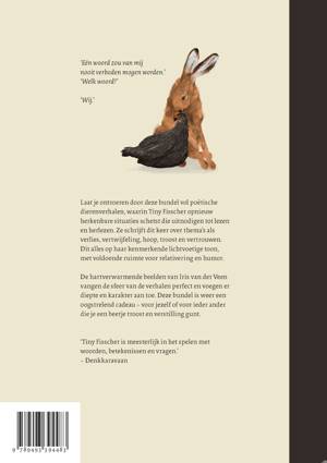 Laat je ontroeren door deze bundel vol poëtische dierenverhalen, waarin Tiny Fisscher opnieuw herkenbare situaties schetst die uitnodigen tot lezen en herlezen. Ze schrijft dit keer over thema’s als verlies, vertwijfeling, hoop, troost en vertrouwen. Dit alles op haar kenmerkende lichtvoetige toon, met voldoende ruimte voor relativering en humor.