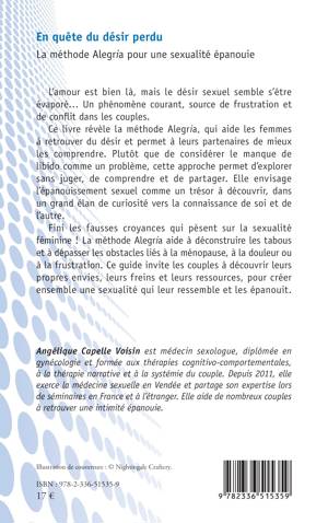 L'amour est bien là, mais le désir sexuel semble s'être évaporé... Un phénomène courant, source de frustration et de conflit dans les couples. Ce livre révèle la méthode Alegria, qui aide les femmes à retrouver du désir et permet à leurs partenaires de mieux les comprendre. Plutôt que de considérer le manque de libido comme un problème, cette approche permet d'explorer sans juger, de comprendre et de partager. Elle envisage l'épanouissement sexuel comme un trésor à découvrir, dans un grand élan de curiosité vers la connaissance de soi et de l'autre. Fini les fausses croyances qui pèsent sur la sexualité féminine ! La méthode Alegria aide à déconstruire les tabous et à dépasser les obstacles liés à la ménopause, à la douleur ou à la frustration. Ce guide invite les couples à découvrir leurs propres envies, leurs freins et leurs ressources, pour créer ensemble une sexualité qui leur ressemble et les épanouit.