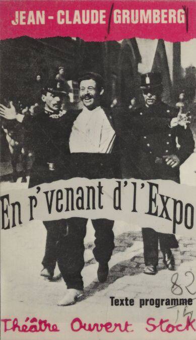A travers des pièces inédites, des textes-programmes, des essais et documents, « Théâtre Ouvert », en suscitant un théâtre de création, se propose de participer au théâtre de notre temps, un théâtre qui dérange en refusant l’acquis. « En r‘venant d’I’Expo ». 1900 : l’Exposition Universelle, le Père Peinard, le Caf’Conc’, les noces de l’Industrie et des Empires coloniaux, le syndicalisme d’action directe, les « Forces de la Joie et de la Chanson ». 1914 : la guerre « fraîche et joyeuse » l’Union Sacrée. Pourquoi ? Comment ? Faisant resurgir les éléments enfouis de la mémoire collective, sans pour autant rouvrir un procès, la pièce utilise les meilleures techniques du récit cinématographique, permettant ainsi au spectateur de s’immerger dans cette « Belle Époque » qui se trouve, en fait, pour nous, à des années-lumière de distance historique. Chansons, discours de tribuns, propos de cafés ou invectives de réunions syndicales, tout concourt, à travers l’histoire d’une famille de comiques-troupiers, à faire sortir de l’oubli l’enfance d’une nation — la nôtre.