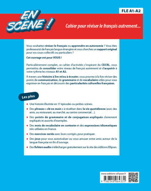 À travers une histoire à lire et/ou à écouter ce cahier d’activités complet est tout particulièrement adapté pour réviser à son rythme les points de communication, de grammaire et de vocabulaire qui seront utiles pour s’exprimer en françaisau quotidien tout en découvrant plusieurs particularités culturelles françaises.