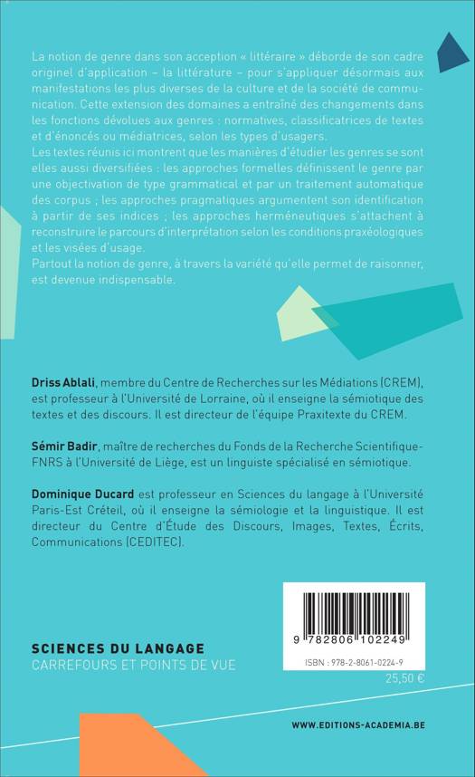 La notion de genre dans son acception "littéraire" déborde de son cadre originel d'application la littérature pour s'appliquer désormais aux manifestations les plus diverses de la culture et de la société de communication. Cette extension des domaines a entraîné des changements dans les fonctions dévolues aux genres. Cet ouvrage montre que les manières d'étudier les genres se sont elles aussi diversifiées. Partout la notion de genre est devenue indispensable.