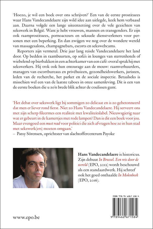 "Het debat over sekswerk ligt bij sommigen zo delicaat en is zo gebetonneerd dat men er liever rond fietst. Niet zo bij Hans Vandecandelaere. Hij serveert ons met zijn scherp fileermes een realiteit met kwaliteitslabel. Nieuwsgierig naar wat er gebeurt in de kamertjes met rode lampen? Dan is dit een boek voor jou. Maar evengoed een must read voor politici die zich afvragen hoe ze in hun stad met sekswerk(ers) moeten omgaan." - Patsy Sörensen, oprichtster van slachtoffercentrum Payoke