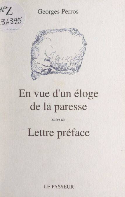 « Perros n’est nullement un apôtre du néant. C’est un désespéré heureux. » C’est en ces termes qu’un de ses amis définit celui qui savait manier avec agilité et sensibilité, sous prétexte de paresse, la note et l’aphorisme. Avec En vue d’un éloge de la paresse (1955), Georges Perros défend, en maniant le paradoxe, une conception aventurière, originale et inattendue de l’acte de penser. Poésie et prose sont intimement liées pour servir une pensée anticonformiste, un nouvel art de vivre. Sur un ton plus intimiste, la Lettre préface (1950) dévoile un Perros plus rebelle, plus écorché, plus exigeant aussi. Refusant de jouer la comédie des apparences, il dénonce avec ardeur tout ce qui dessert l’authenticité. Ce parti pris l’amène à quitter Paris et le monde du théâtre pour se réfugier à Douarnenez où l’auteur des Papiers collés devient un véritable “poète-praticien”.