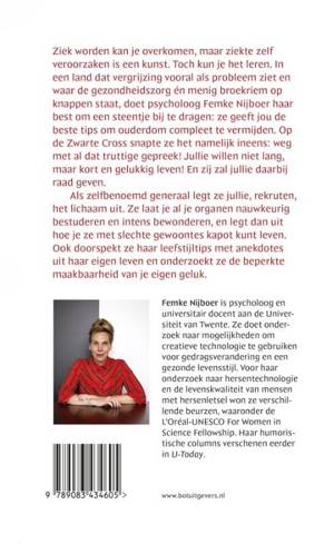 Ziek worden kan je overkomen, maar ziekte zelf veroorzaken is een kunst. Toch kun je het leren. In een land dat vergrijzing vooral als probleem ziet en waar de gezondheidszorg én menig broekriem op knappen staat, doet psycholoog Femke Nijboer haar best om een steentje bij te dragen: ze geeft jou de beste tips om ouderdom compleet te vermijden. Op de Zwarte Cross snapte ze het namelijk ineens: weg met al dat truttige gepreek! Jullie willen niet lang, maar kort en gelukkig leven! En zij zal jullie daarbij raad geven.