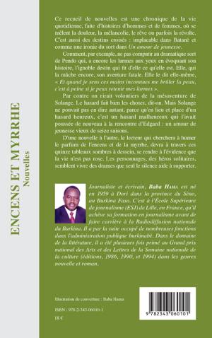 Ce recueil de nouvelles est une chronique de la vie quotidienne, faite d'histoires d'hommes et de femmes, où se mêlent la douleur, la mélancolie, le rêve ou parfois la révolte. D'une nouvelle à l'autre, le lecteur qui cherchera à humer le parfum de l'encens et de la myrrhe, devra à travers ces quinze tableaux sombres à dessein, se rendre à l'évidence que la vie n'est pas rose. Les personnages, des héros solitaires, semblent vivre des drames que seul le silence aide à supporter.