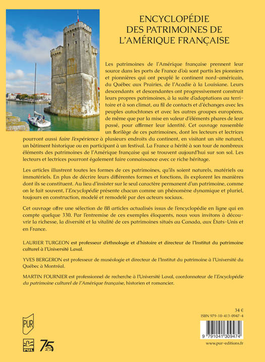 Les patrimoines de l’Amérique française prennent leur source dans les ports de France d’où sont partis les pionniers et pionnières qui ont peuplé le continent nord-américain, du Québec aux Prairies, de l’Acadie à la Louisiane. Leurs descendants et descendantes ont progressivement construit leurs propres patrimoines, à la suite d’adaptations au territoire et à son climat, au fil de contacts et d’échanges avec les peuples autochtones et avec les autres groupes européens, de même que par la mise en valeur d’éléments phares de leur passé, pour affirmer leur identité. Cet ouvrage rassemble un florilège de ces patrimoines, dont les lecteurs et lectrices pourront aussi faire l’expérience à plusieurs endroits du continent, en visitant un site naturel, un bâtiment historique ou en participant à un festival. La France a hérité à son tour de nombreux éléments des patrimoines de l’Amérique française qui se trouvent aujourd’hui sur son sol. Les lecteurs et lectrices pourront également faire connaissance avec ce riche héritage. Les articles illustrent toutes les formes de ces patrimoines, qu’ils soient naturels, matériels ou immatériels. En plus de décrire leurs différentes formes et fonctions, ils explorent les manières dont ils se constituent. Au lieu d’insister sur le seul caractère permanent d’un patrimoine, comme on le fait souvent, l’Encyclopédie présente chacun comme un phénomène dynamique et pluriel, toujours en construction, modelé et remodelé par des acteurs sociaux.