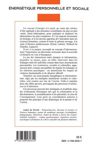 Le concept d'énergie s'est imposé récemment en biologie, et il est devenu opportun de l'introduire dans les sciences humaines, comme le tente cet ouvrage. Il est, à ce propos, accouplé au concept d'information, dont l'importance est désormais croissante dans la nouvelle civilisation en voie d'émergence. Toutefois, les mouvements énergétiques et informationnels sont soumis aux lois de l'inertie. Celle-ci entraîne donc des effets pervers, provoquant des processus d'aliénation et d'altération.