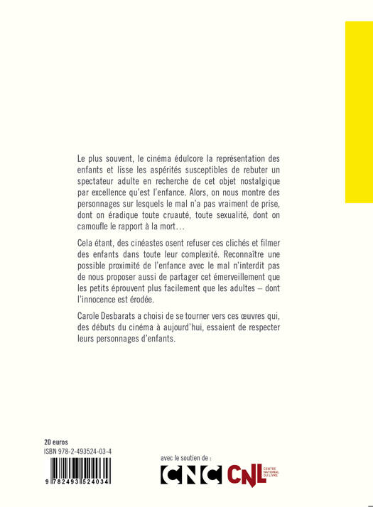 Cette étude s’intéresse à la manière dont la représentation de l’enfant a évolué depuis les débuts du cinéma jusqu’à nos jours, mais aussi à la manière dont ces représentations à l’écran ont été perçues par les spectateurs. Au travers de nombreuses analyses de films et de séquences contextualisées, l’autrice développe l’idée selon laquelle, tout au long de l’histoire du cinéma, deux représentations de l’enfant s’affrontent.