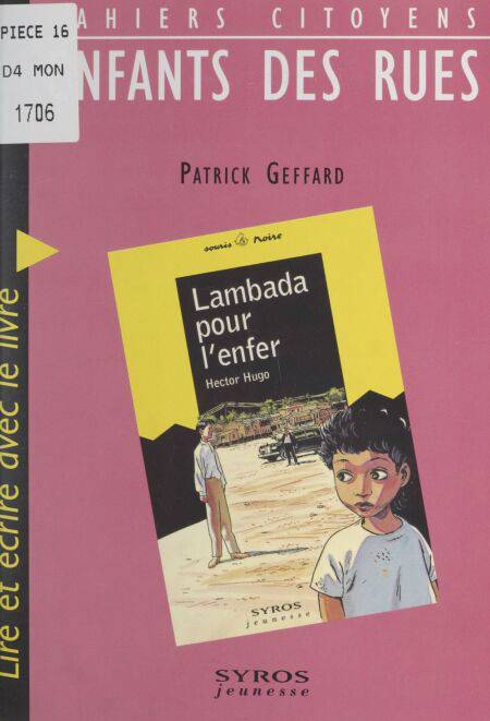 Un cahier de lecture, d'écriture et d'éducation à la citoyenneté, réalisé par des enseignants pour des élèves des classes de cycle 3 ou des classes de 6e et 5e, contenant : des fiches pour les élèves, prêtes à photocopier et libres de droits à l'usage d'une classe ; une documentation pour l'enseignant avec des pistes de recherches et d'activités. Des objectifs modulables selon la classe concernée et les stratégies mises en place : permettre le repérage des éléments essentiels qui structurent un roman, affiner les compétences en lecture, base indispensable pour entrer dans les études à caractère plus littéraire. Ces compétences étant souvent encore en voie d'appropriation à l'entrée au collège, proposer des productions d'écrits en s'appuyant sur la lecture d'un texte de fiction, impliquer l'écrivant dans des productions d'écrits en relation avec différents genres, aborder des thèmes sociaux ou culturels qui vont au-delà du texte étudié, ouvrir des pistes de recherches, de débats et d'activités interdisciplinaires. Un roman choisi pour sa qualité d'écriture et les problèmes qu'il propose à la réflexion collective : Lambada pour l'enfer, de Hector Hugo, éditions Syros jeunesse, collection « Souris noire » n° 2. Ce cahier aborde le thème des enfants des rues en Amérique latine. Les héros du roman Lambada pour l'enfer survivent difficilement à Medellin, en Colombie, au milieu des trafiquants de drogue, de la corruption et dans un climat de grande violence. L'espoir est représenté par le padre Camilo, intervenant d'une organisation humanitaire. Un roman fort, dur, qui ne laisse pas indifférent et permet de s'ouvrir à une autre société, une autre culture.