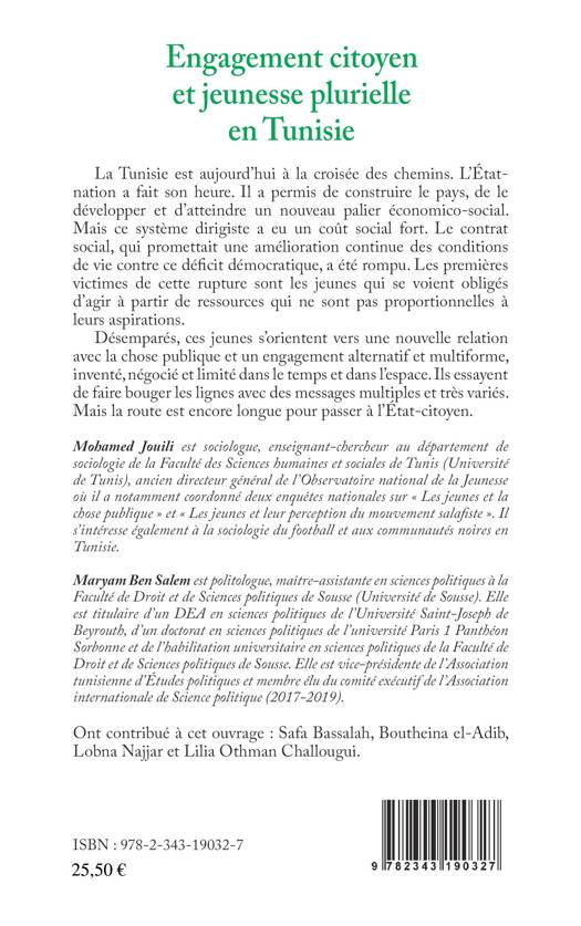 La Tunisie est aujourd’hui à la croisée des chemins. Le dirigisme de l’État-nation, qui a permis de construire le pays, de le développer et d’atteindre un nouveau palier économico-social eu un coût social fort. Le contrat social, qui promettait une amélioration continue des conditions de vie contre ce déficit démocratique, a été rompu. Premières victimes de cette rupture, les jeunes, désemparés, s’orientent vers une nouvelle relation avec la chose publique et un engagement alternatif et multiforme, inventé, négocié et limité dans le temps et dans l’espace. Ils cherchent ainsi de nouveaux champs d'expérimentation de la citoyenneté.