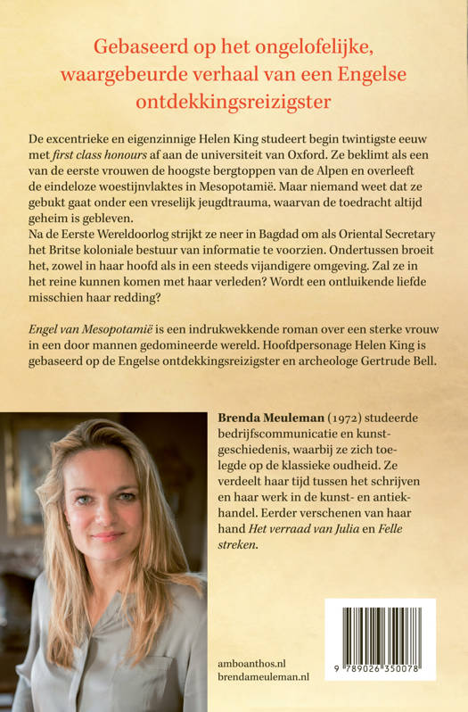 Engel van Mesopotamië is een indrukwekkende roman over een sterke vrouw in een door mannen gedomineerde wereld. Hoofdpersonage Helen King is gebaseerd op de Engelse ontdekkingsreizigster en archeologe Gertrude Bell.