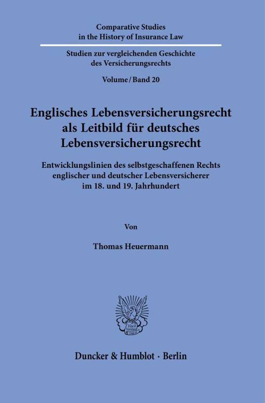 Die englischen Versicherer haben mit ihrer Prasenz auf den kontinentaleuropaischen Versicherungsmarkten im 19. Jahrhundert die Entwicklung der Versicherungspraxis und des Versicherungsrechts auf dem Kontinent massgeblich gepragt. So jedenfalls stellt die Literatur die Entwicklungsgeschichte der Lebensversicherung uberwiegend dar. Detaillierte Analysen zu diesem vermeintlich pragenden Einfluss fehlen indes bisher. Thomas Heuermann hat es sich in seiner Arbeit zur Aufgabe gemacht, diesen Einfluss fur das Lebensversicherungsrecht in Deutschland eingehend zu beleuchten. Dabei beschrankt er sich nicht nur auf die rechtlichen Entwicklungen, es handelt sich also um keine rein dogmengeschichtliche Betrachtung, sondern er verknupft die rechtlichen Entwicklungen mit den versicherungstechnischen Fortschritten. Da insbesondere die deutschen Witwenkassen und Versorgungsanstalten des 18. Jahrhunderts insoweit unterforscht sind, hat er hier Neuland betreten.
