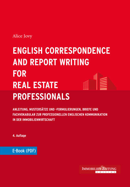 Kenntnisse der englischen Sprache sind in der Immobilienwirtschaft ein Muss. Ein gutes Schulenglisch und ausgewähltes Fachvokabular bringen heutzutage viele in der Branche Tätige mit. Doch bei der richtigen Anwendung stößt man schnell an die Grenzen seiner sprachlichen Ausdrucksfähigkeit. Genau hier setzt dieses Buch an. Es verknüpft das thematisch aufbereitete englische Fachvokabular aus den unterschiedlichsten Arbeitsgebieten der Immobilienwirtschaft situationsbezogen mit Musterformulierungen und -sätzen, Briefen und sonstigen Schriftstücken und wappnet so für zahlreiche Situationen und Anlässe im beruflichen Alltag. Zahlreiche Tipps und Hinweise helfen, naheliegende Fehler zu vermeiden, und weisen in einige Geheimnisse der interkulturellen Kommunikation mit englischen Muttersprachlern ein.