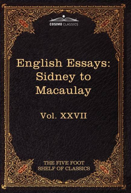 Author names not noted above: Ben Jonson, Abraham Cowley, Joseph Addison, Sir Richard Steele, Jonathan Swift, Daniel Defoe, Samuel Johnson, David Hume, Sydney Smith, Samuel Taylor Coleridge, William Hazlitt, Leigh Hunt, Charles Lamb, Thomas De Quincey, Percy Bysshe Shelley Originally published between 1909 and 1917 under the name "Harvard Classics," this stupendous 51-volume set-a collection of the greatest writings from literature, philosophy, history, and mythology-was assembled by American academic CHARLES WILLIAM ELIOT (1834-1926), Harvard University's longest-serving president. Also known as "Dr. Eliot's Five Foot Shelf," it represented Eliot's belief that a basic liberal education could be gleaned by reading from an anthology of works that could fit on five feet of bookshelf. Volume XXVII features 24 important essays from 17 essential English writers, including: - "The Defense of Poesy" by Sir Philip Sidney - "On Shakespeare" and "On Bacon" by Ben Jonson - "Of Agriculture" by Abraham Cowley - "The Vision of Mirza" and "Westminster Abbey" by Joseph Addison - "The Spectator Club" by Sir Richard Steele - "Hints Towards an Essay on Conversation," "A Treatise on Good Manners and Good Breeding," "A Letter of Advice to a Young Poet," and "On the Death of Esther Johnson (Stella)" by Jonathan Swift - "The Shortest-Way With the Dissenters" and "The Education of Women" by Daniel Defoe - "Life of Addison, 1672-1719" by Samuel Johnson - "Of the Standard of Taste" by David Hume - "Fallacies of Anti-reformers" by Sydney Smith - "On Poesy or Art" by Samuel Taylor Coleridge - "Of Persons One Would Wish to Have Seen" by William Hazlitt - "Deaths of Little Children" and "On the Realities of Imagination" by Leigh Hunt - "On the Tragedies of Shakespeare" by Charles Lamb - "Levana and Our Ladies of Sorrow" by Thomas De Quincey - "A Defense of Poetry" by Percy Bysshe Shelley - "Machiavelli" by Thomas Babington Macaulay.